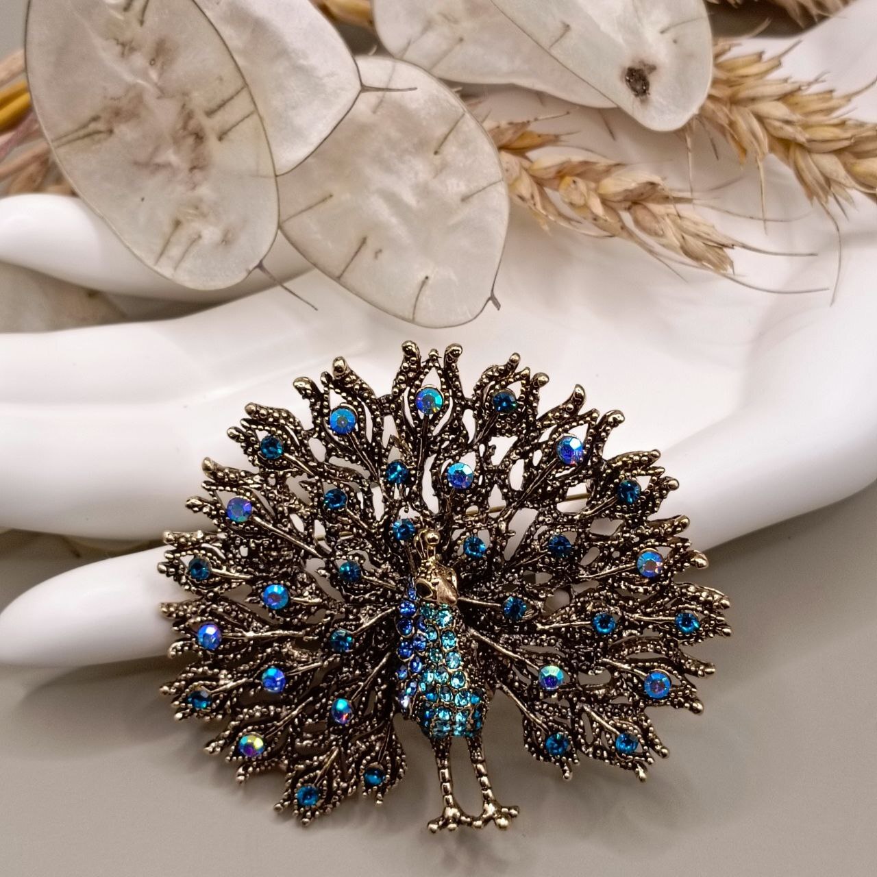 Брошь «Павлин» — изысканный аксессуар, подчеркивающий индивидуальность и стиль. Воплощение элегантности и утонченности дизайна станет акцентом вашего образа и добавит нотку роскоши в любой наряд. Удобная клипса надежно фиксирует брошку, обеспечивая комфортное ношение. Подходит к платьям, пальто, жакетам и шарфам. Идеально подойдет в качестве подарка женщине, ценящей красоту и внимание к деталям.