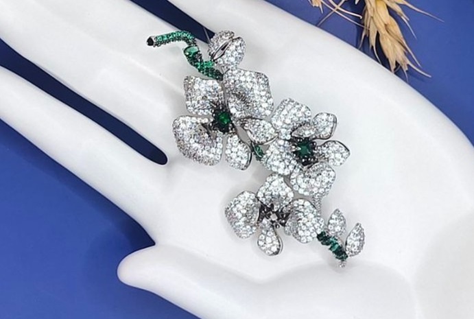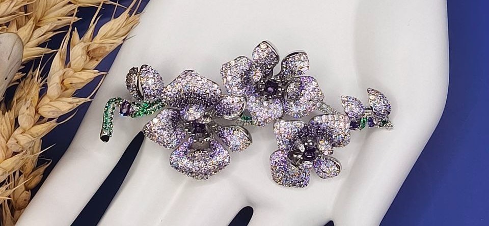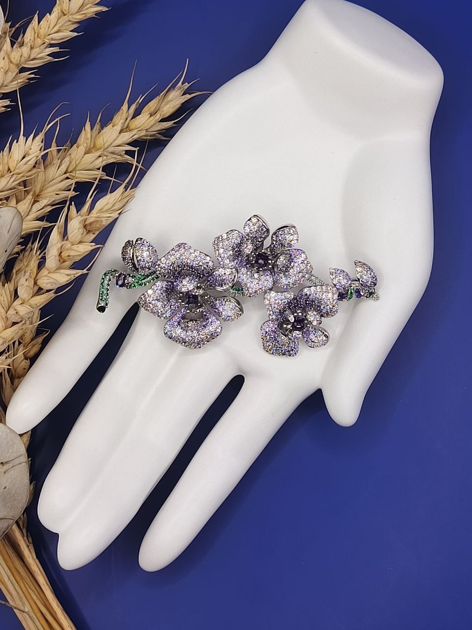 Изящная брошь «Веточка орхидеи» из меди и кубического циркона — изысканный аксессуар для вашего образа! Элегантность дизайна подчеркнет вашу индивидуальность и придаст уверенности. Медное покрытие обеспечивает гипоаллергеность и долговечность, а имитация бриллиантов создает утонченный блеск. Подходит к деловым костюмам, вечерним платьям, праздничным нарядам. Удобный зажим надежно фиксирует изделие на ткани. Добавьте стильности вашему гардеробу вместе с нашей брошью!