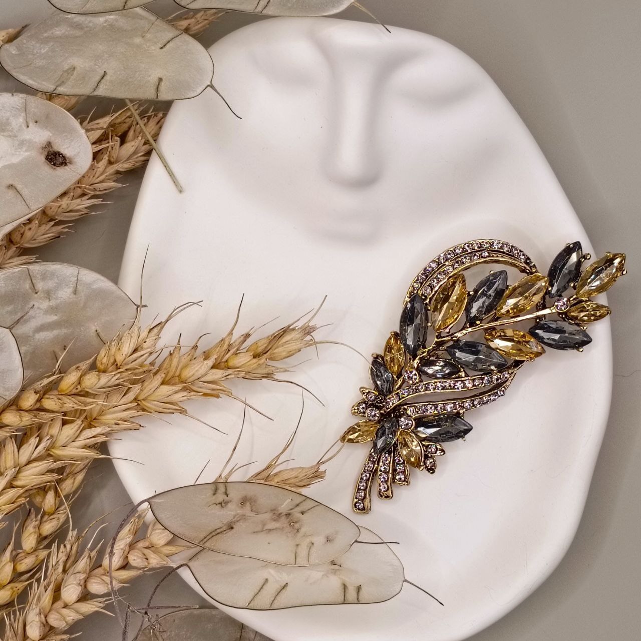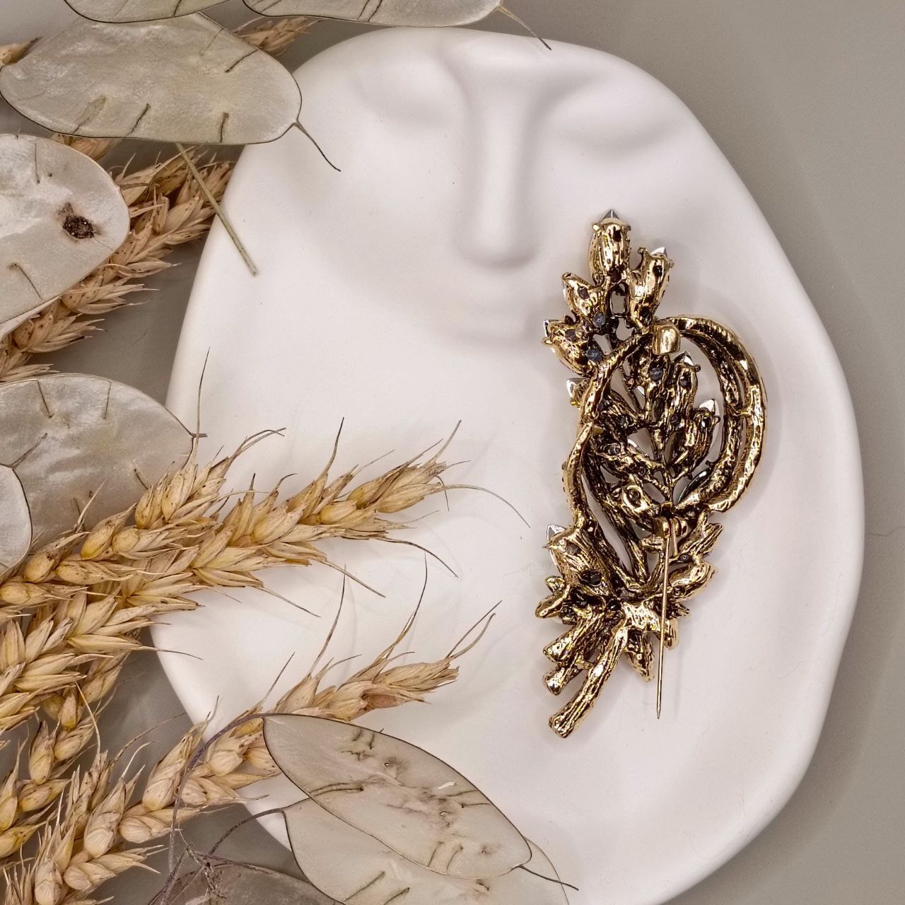 Праздничная брошь «Ветвь» — изысканный аксессуар, подчеркивающий вашу индивидуальность и добавляющий образу торжественности. Идеально подходит для праздничных мероприятий, свадеб и официальных встреч. Стильный дизайн и высокое качество исполнения позволяют носить её неоднократно, сочетая с различными нарядами. Добавьте нотку элегантности вашему гардеробу уже сегодня!