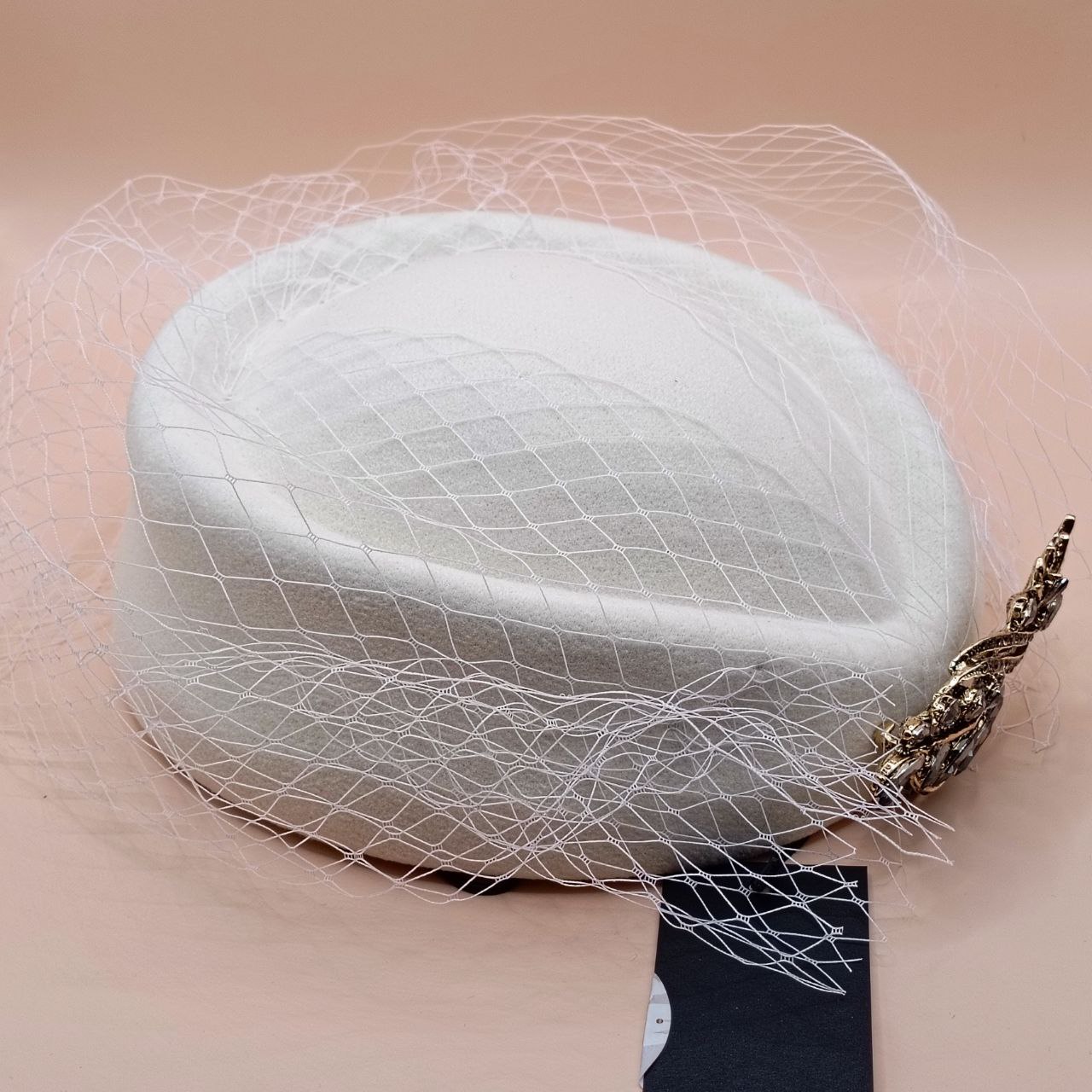 Фетровая шляпа с брошью веточки с вуалью, р54-56.Ручной работы. Изделие выполнено из высококачественного фетра, который отличается своей мягкостью, экологичностью и устойчивостью к внешним воздействиям. В качестве украшения использована изящная брошь в виде ветки, дополненная нежной вуалью. Шляпа подчеркнет индивидуальность владелицы, станет прекрасным дополнением образа и придаст ему нотку элегантности и романтики.