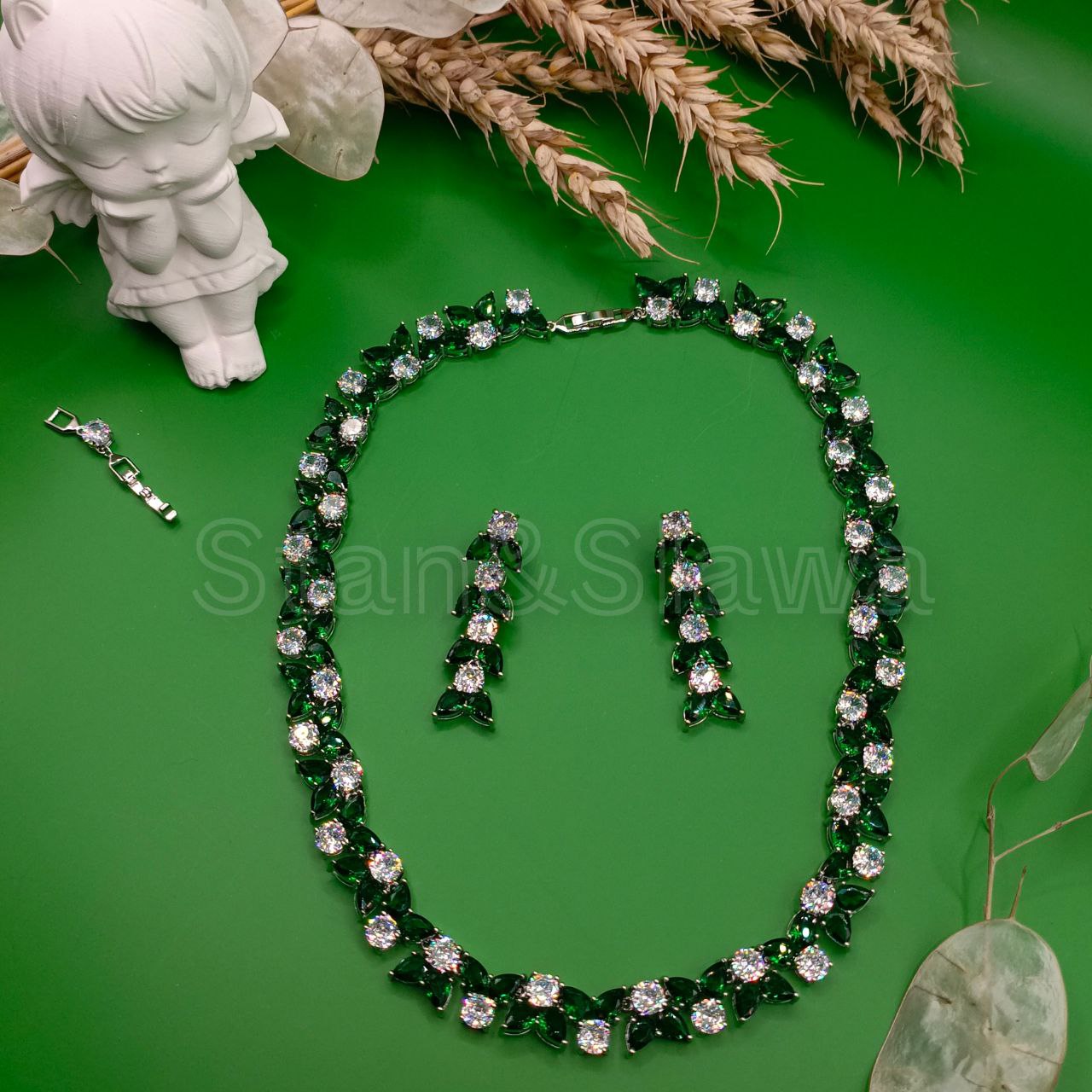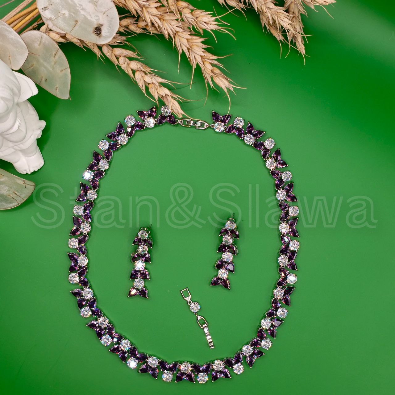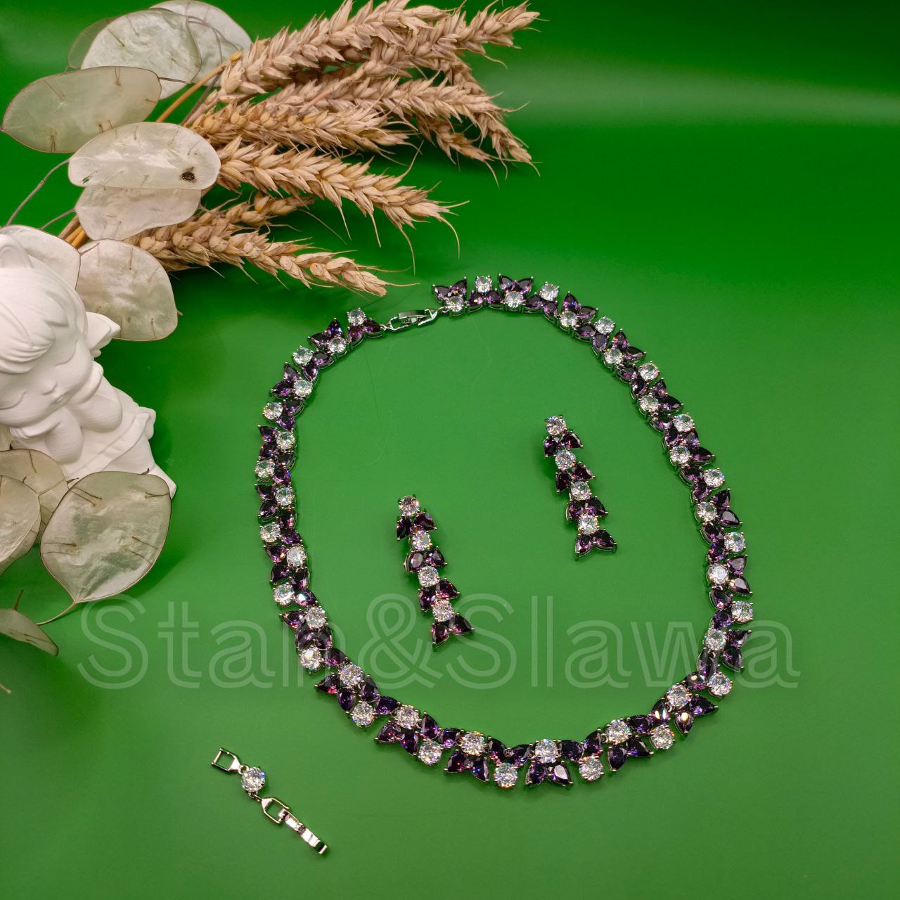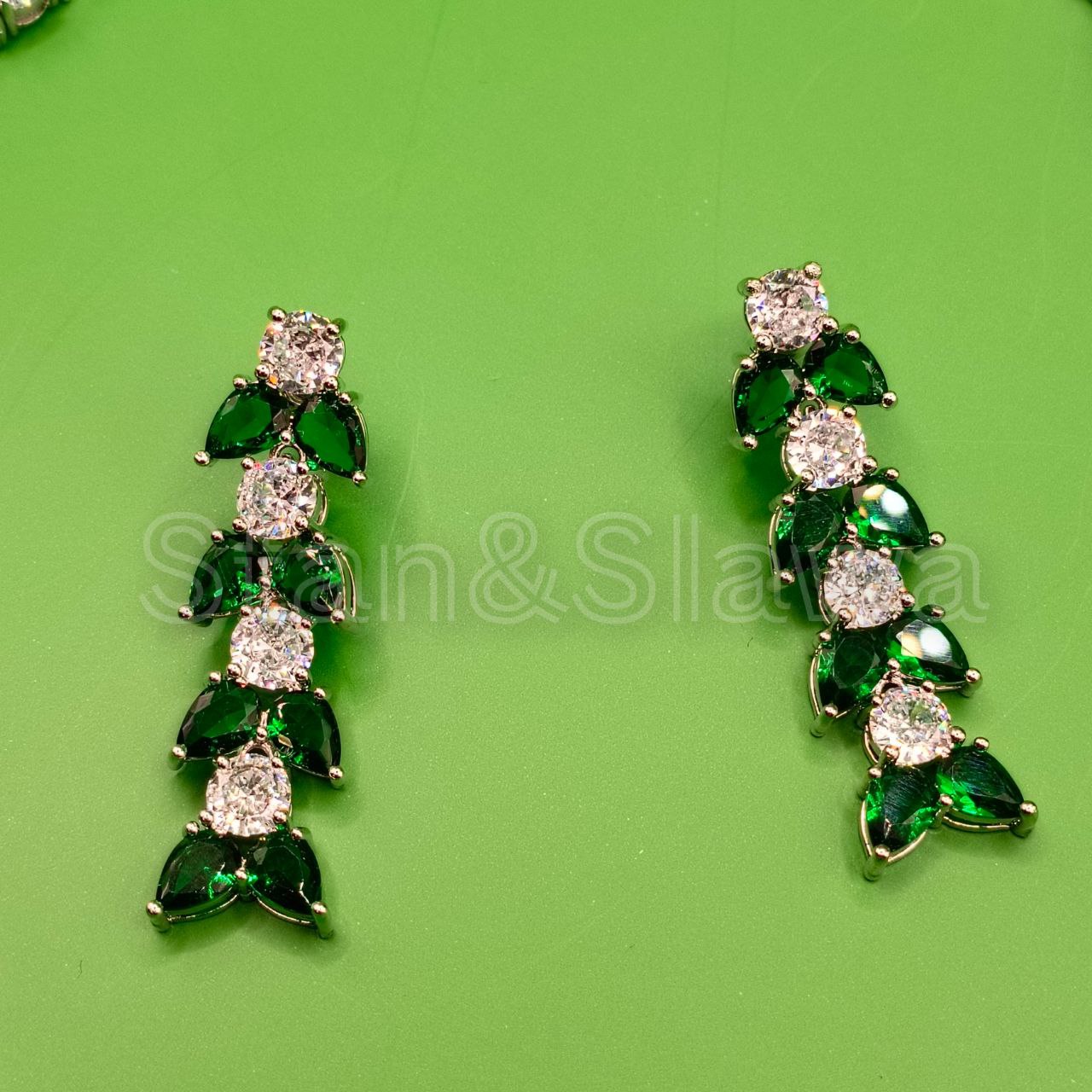 Набор из меди и кубического циркония ААА. ожерелье 44 см, серьги 4,2см, вес 78гр.