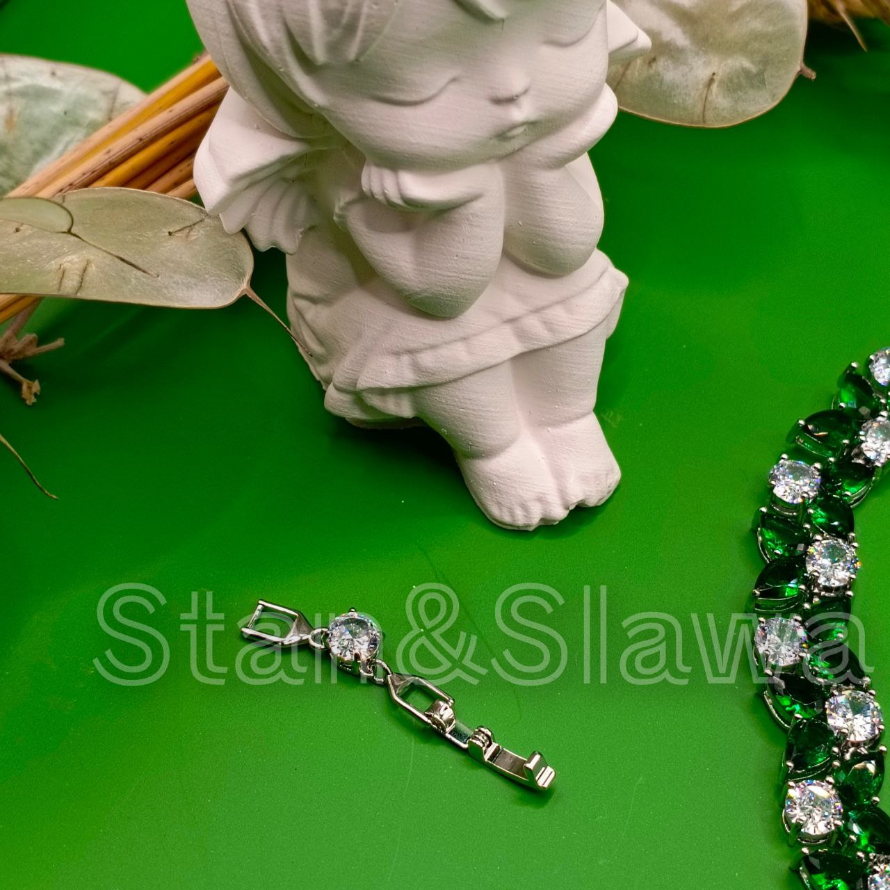 Цвет камня - прозрачный, имитирующий бриллиант. Закрепление камней надежное, выполнено квалифицированными мастерами. Сохраняет блеск и красоту при правильном уходе.