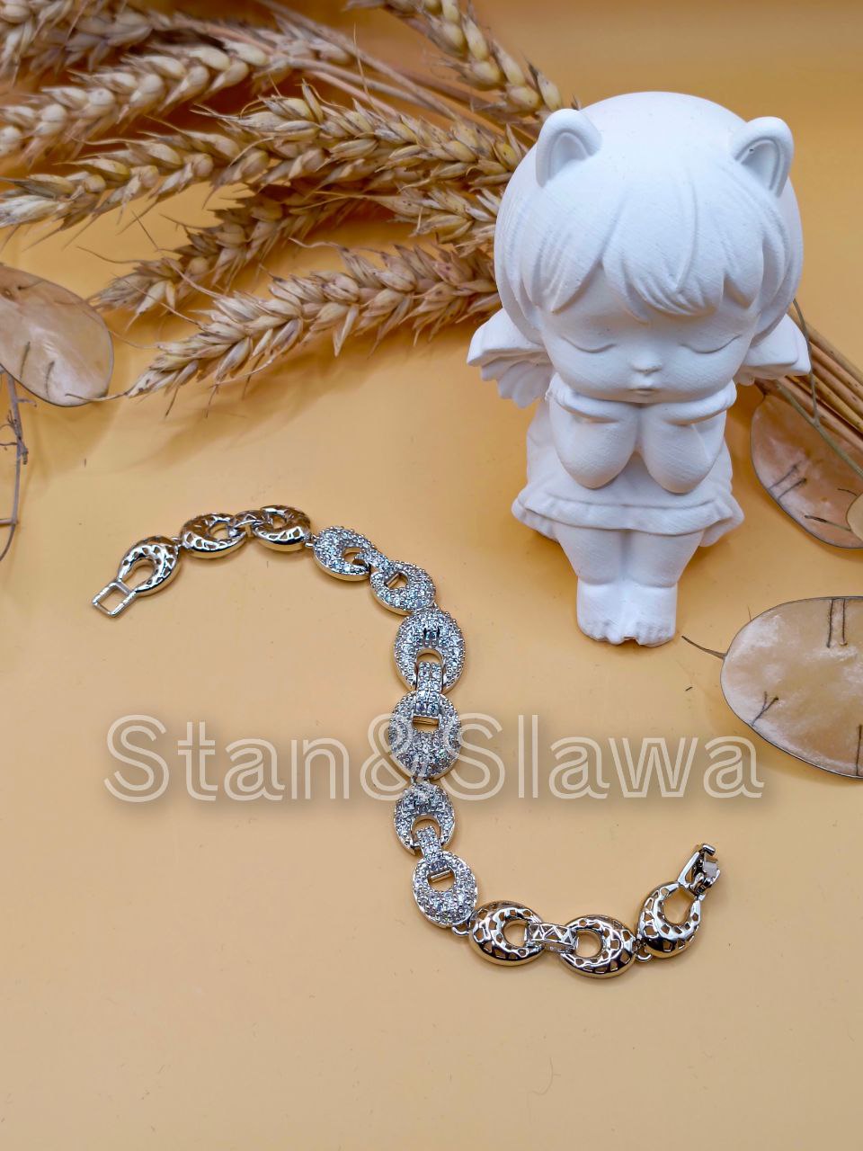 Ожерелье 48 см,браслет 18,5см, серьги 2,8см, кольцо регулируемое.