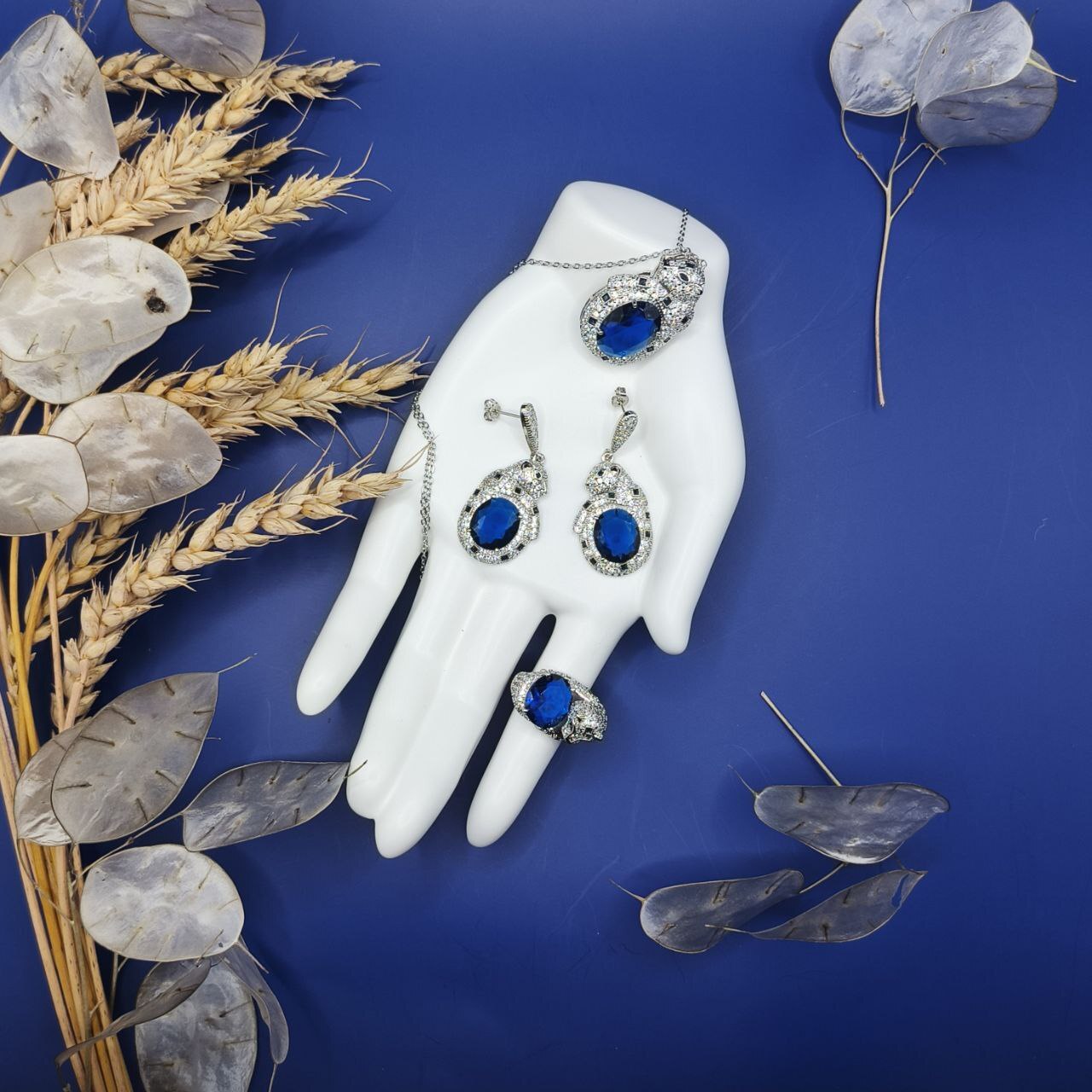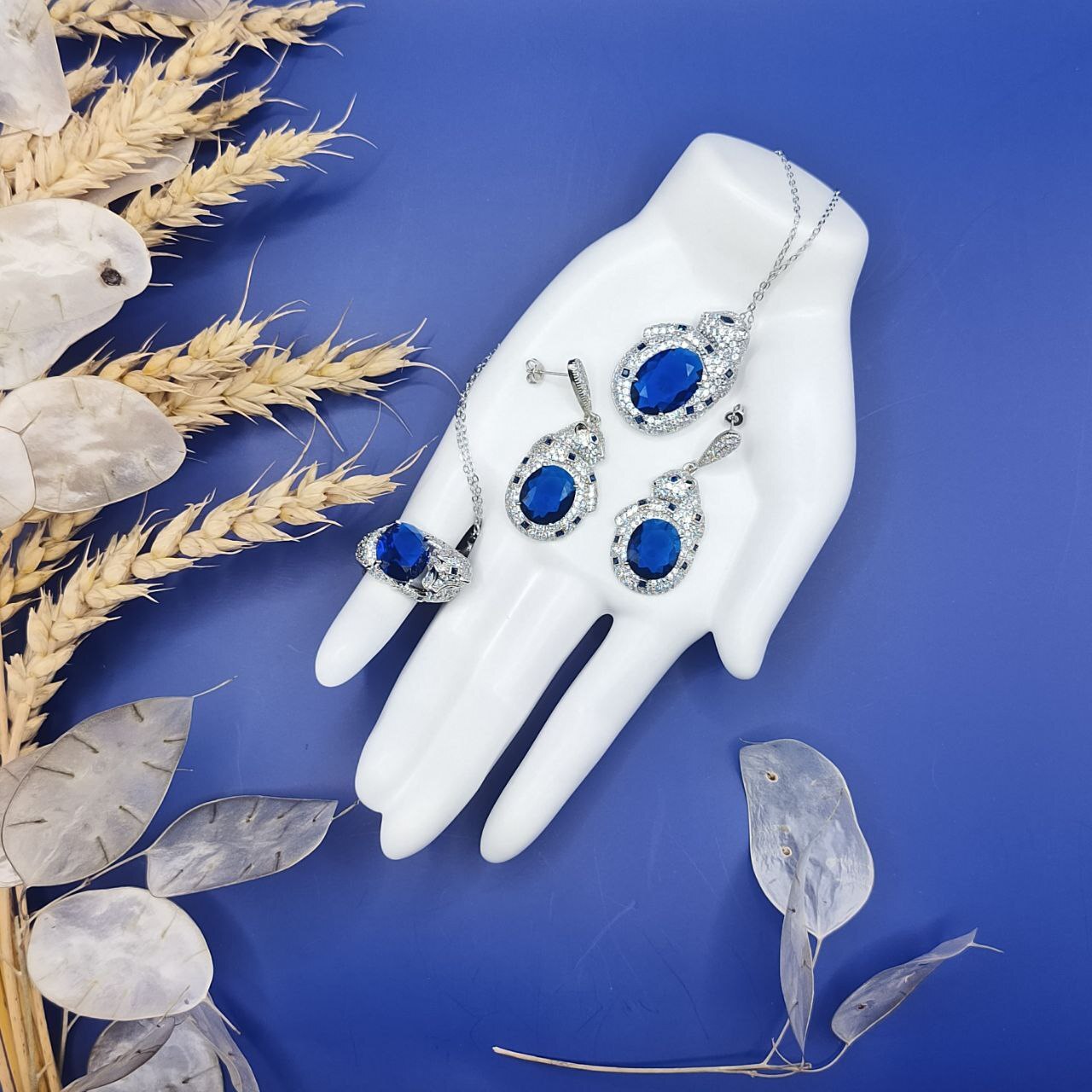 Медный никелевый сплав, искусственный камень, цирконий. Ширина кольца 16мм (размер регулируется).Длина и ширина серьги:46*21мм. Длина и ширина подвески 35*24мм. Длина ожерелья 45см. Набор демонстрирует идеальное сочетание элегантности и прочности. Материал изготовления обеспечивает гипоаллергенность и долговечность изделий. Элегантная геометрия моделей подчеркивает индивидуальность владельца, а качественная обработка поверхности придает украшению блеск и изысканность. Коллекция представлена в нейтральной палитре оттенков, что позволяет сочетать изделия между собой и создавать оригинальные ювелирные ансамбли.