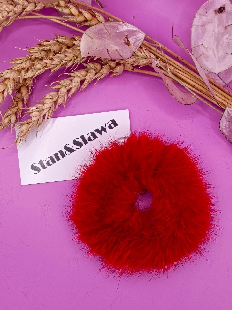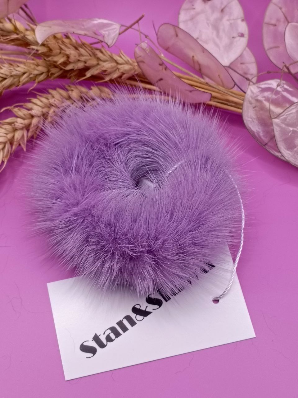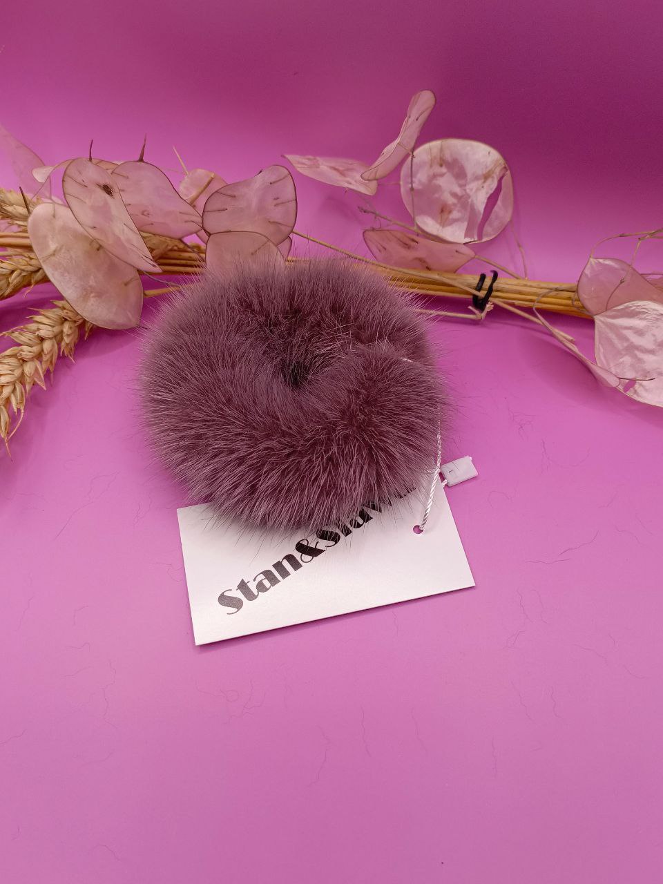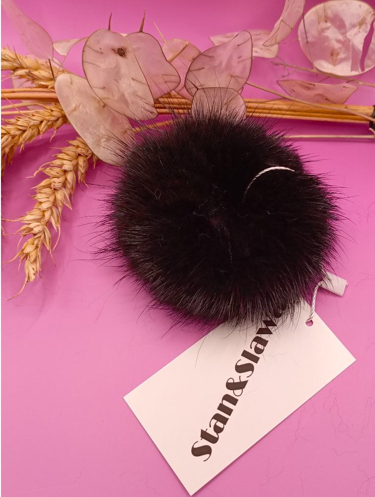 Изделие сочетает изысканность натурального меха и практичность повседневного аксессуара. Подходит для фиксации длинных волос в виде пучка, хвоста или стильных причесок.