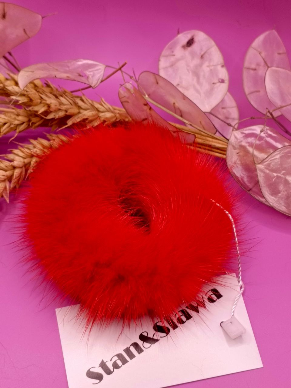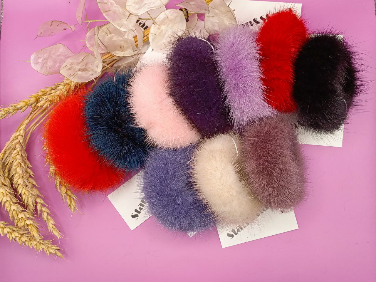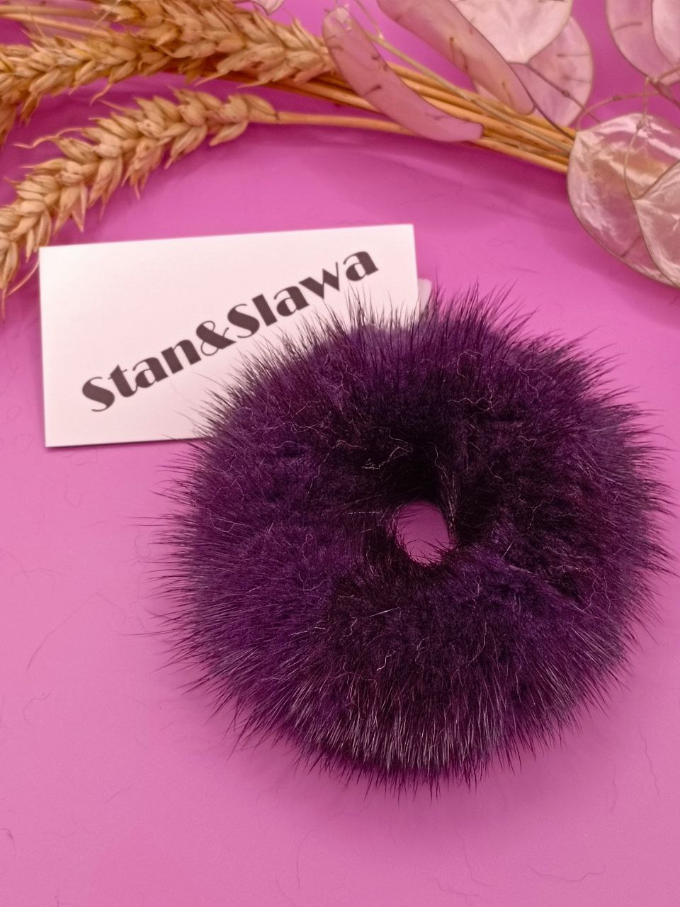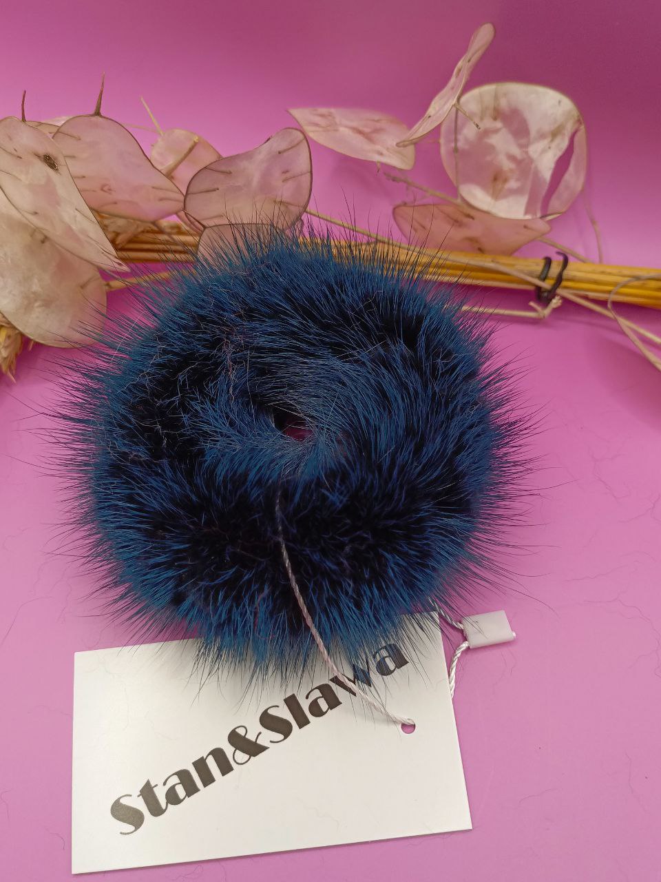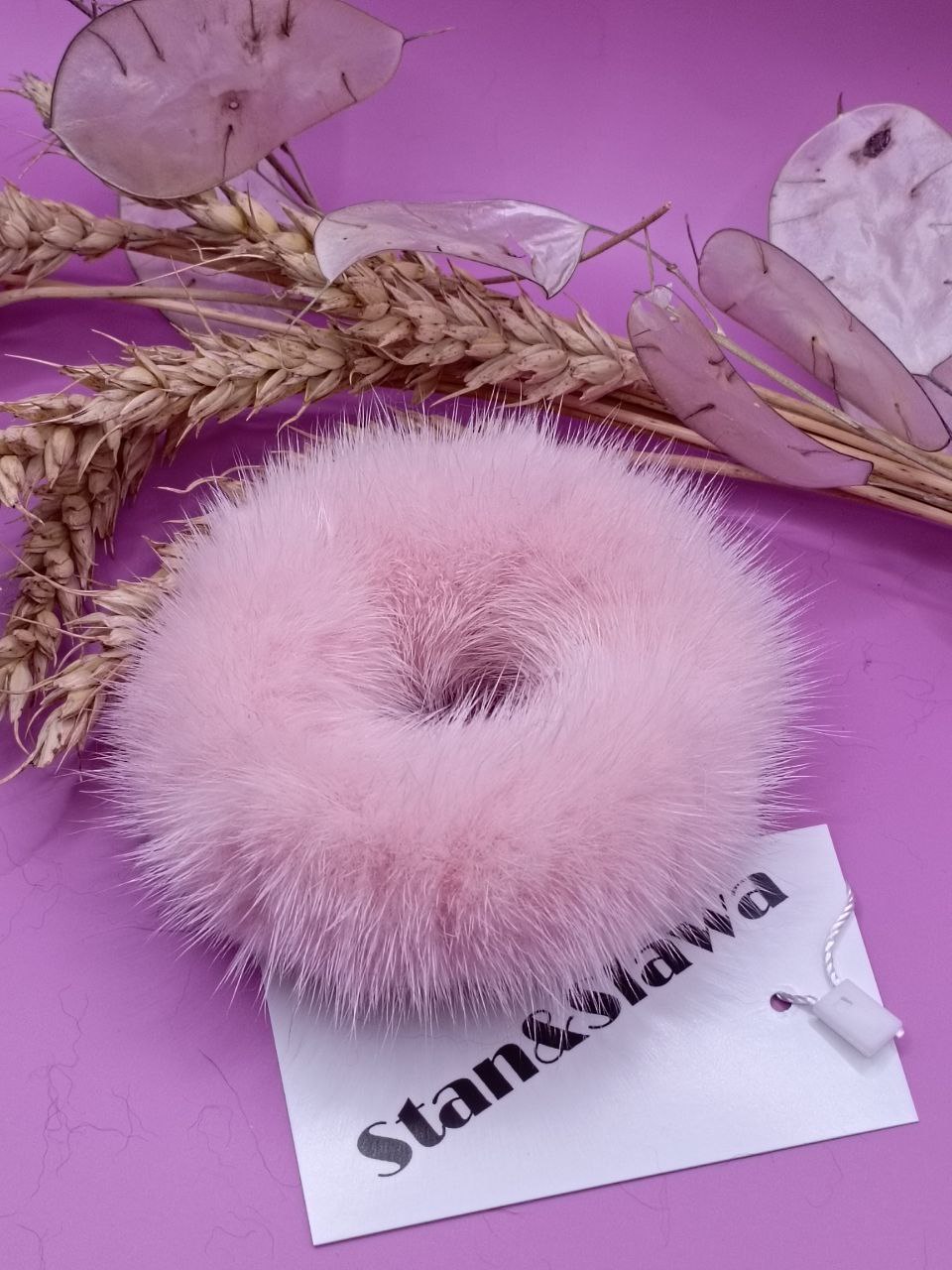 Резинка для волос из натуральной норки, диаметр 8см.