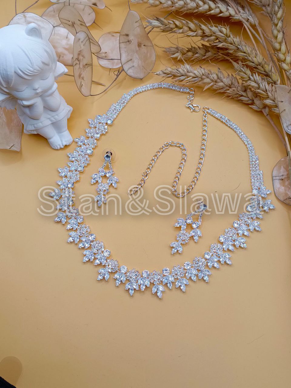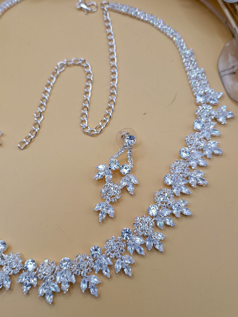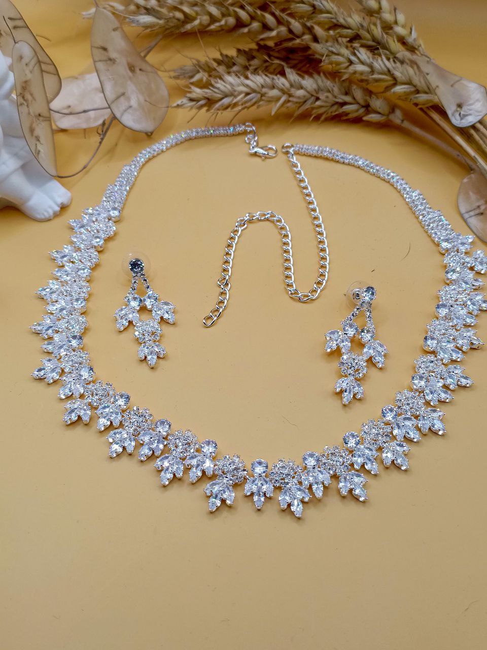 Нежный комплект из кубического циркония, посеребренный.