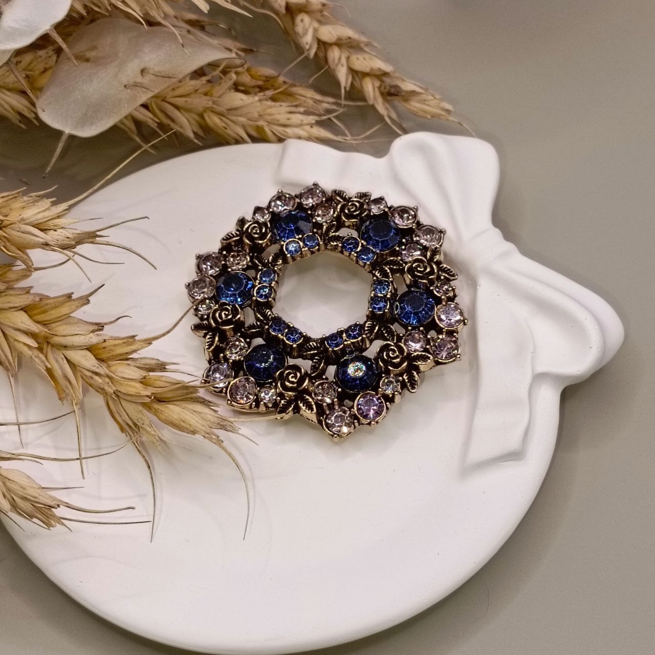 Винтажная брошь "Розы синий хрусталь" — изысканное украшение ручной работы из качественного металла и синего хрусталя. Добавит нотку элегантности вашему образу, подчеркнет индивидуальность и статус. Прекрасно подойдет к платьям, пальто, аксессуарам или станет оригинальным подарком близким. Подходит поклонникам винтажного стиля и ценителям красоты. Настоящий акцент вашего гардероба!